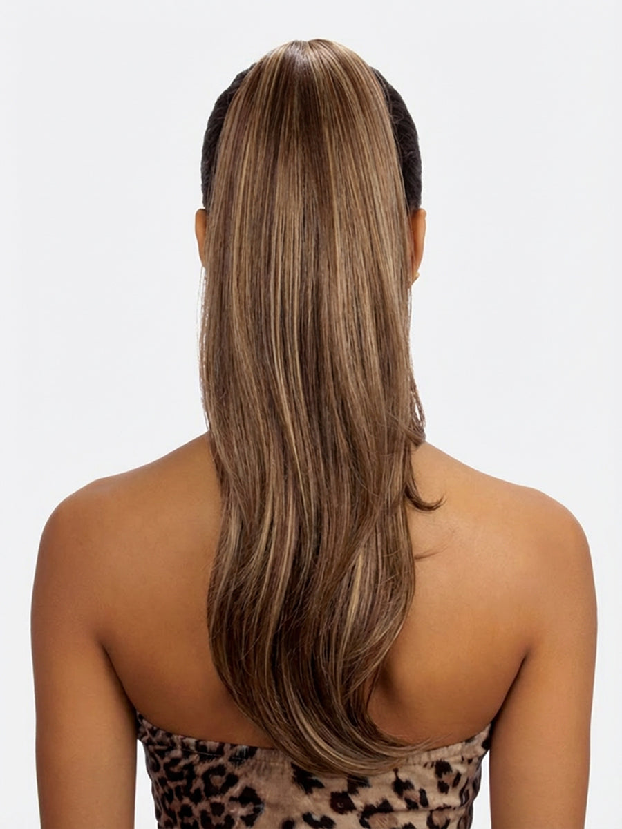 • A drawstring with a feathery layered look and flipped in ends.